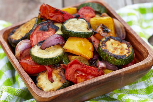 בתבנית אפייה מניחים את כל המצרכים חתוכים גס,מתבלים ומזלפים בנדיבות שמן זית מערבבים הכל ומכניסים לתנור לאפייה של 20 דק' עד להזהבה.