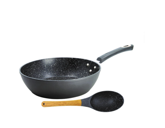 מארז כולל מחבת המיוצרת מיציקת אלומיניום בתהליך רב שכבתי, חלוקת חום שווה ויעילה.