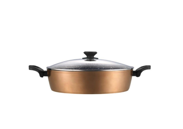 עשוי מאלומיניום רב שכבתי, עם ציפוי Non Stick איכותי בגימור דמוי שיש, המונע את הידבקות המזון ומעודד שימוש מופחת בשמן.