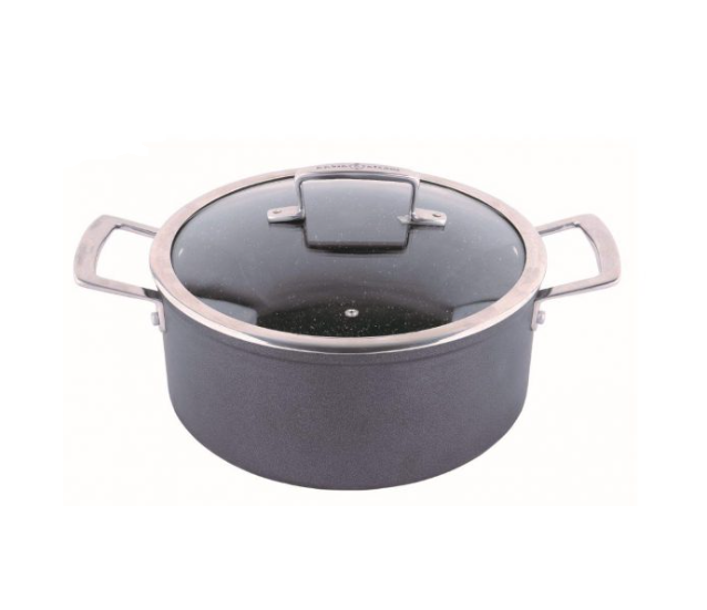 סיר עשוי מאלומיניום רב שכבתי, עם ציפוי Non Stick איכותי בגימור דמוי שיש, המונע את הידבקות המזון ומעודד שימוש מופחת בשמן.